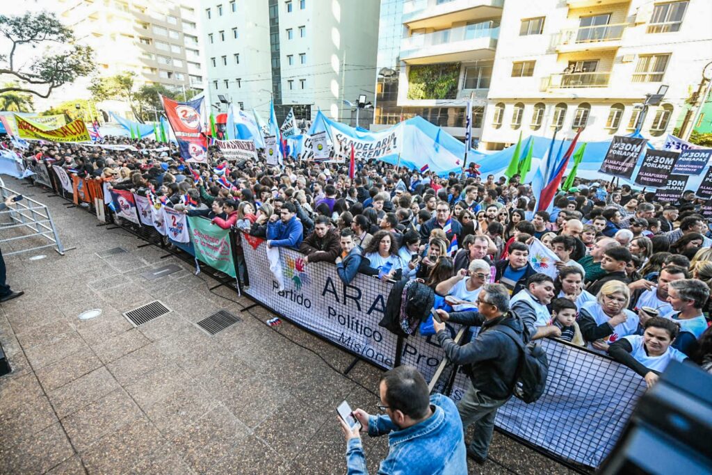 Este jueves, en la explanada de la Legislatura provincial se llevó a cabo el encuentro #30M por La Paz. La actividad contó con el contundente apoyo de referentes políticos y la sociedad misionera. Alrededor de 50 mil asistentes formaron parte del evento.