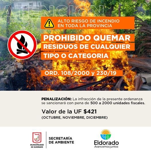 ALTO RIESGO DE INCENDIO EN TODA LA PROVINCIA