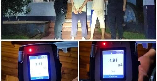 Primeramente, en la Picada Tamandua de Salto Encantado, cerca de las 22:40 horas, los efectivos arrestaron a dos hombres de 41 y de 45 años, quienes momentos antes produjeron un altercado. Ambos hombres dieron positivo al test de alcoholemia superando los 1.90 g/l.
