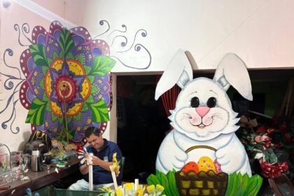 Puerto Esperanza arma su decoración de Pascuas con materiales reciclados