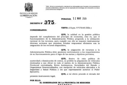 El gobernador Passalacqua firmó el Decreto N.º 375 mediante el cual se…