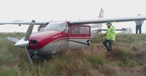 La avioneta, identificada como una Cessna 206 monomotor de color gris y bordó, no presentaba identificación visible, ya que su patente había sido borrada. Este hecho aumenta las sospechas de que la aeronave pudiera haber sido robada.