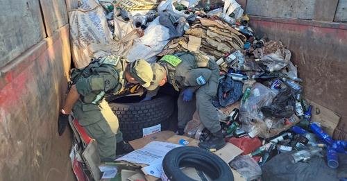 Los controles físicos y documentológicos efectuados sobre el mismo permitieron corroborar que lo declarado en la documentación presentada, vidrio para reciclaje, no era coincidente con la carga transportada, lo cual quedó en evidencia luego que la inspección ocular realizada sobre el compartimiento de carga permitiera observar lo que parecían ser cajas de cartón debajo de los bolsones que contenían el material para reciclaje que expresaba el remito.