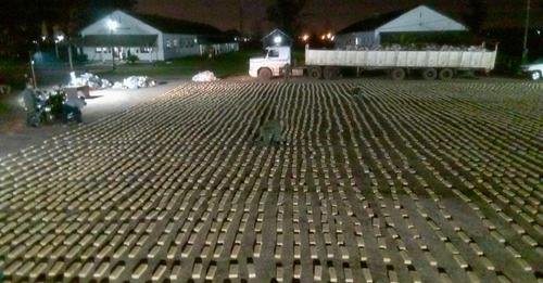 Ante ese hallazgo, en presencia de testigos, se bajó el cargamento completo en donde luego de varias horas durante la madrugada de ayer pudieron contabilizar un total de 7.390 ladrillos que fueron sometidos a la prueba de campo narcotest y arrojaron resultado positivo para marihuana con un peso total de 6.100 kilos 903 gramos.