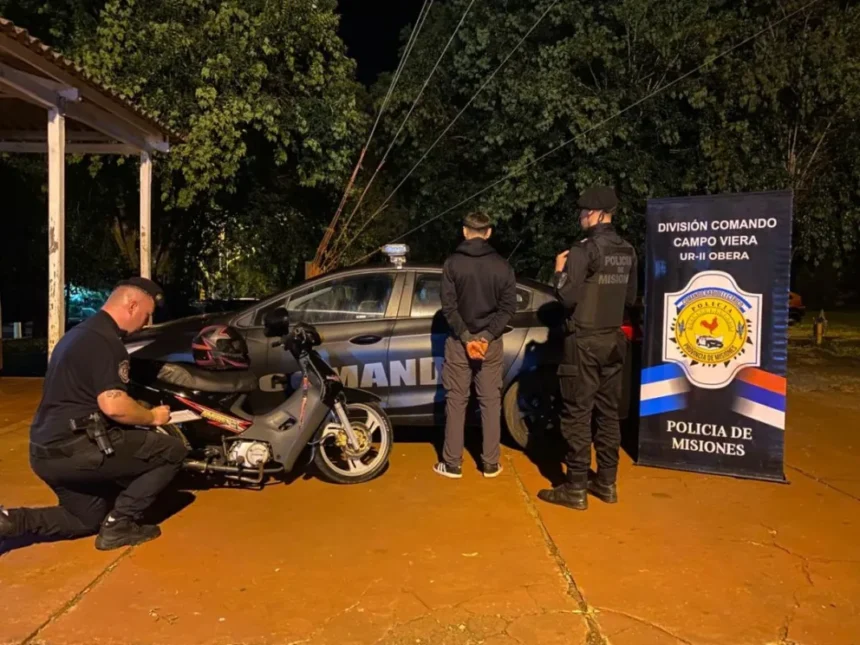El procedimiento tuvo lugar alrededor de las 2:30 horas, cuando efectivos de la División Comando Radioeléctrico, dependiente de la Unidad Regional II de Oberá, realizaban recorridas preventivas y advirtieron la presencia de una motocicleta 110 cc de color negro que efectuaba maniobras peligrosas en plena vía pública.