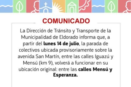 La Dirección de Tránsito y Transporte de la Municipalidad de Eldorado informa…