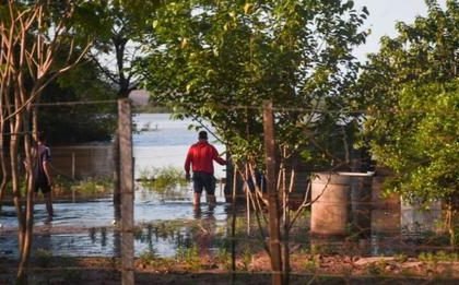 Según el informe de Defensa Civil, el río baja lentamente. Continúan anegados…