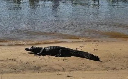 Un enorme yacaré apareció tomando sol en una playa de Corrientes