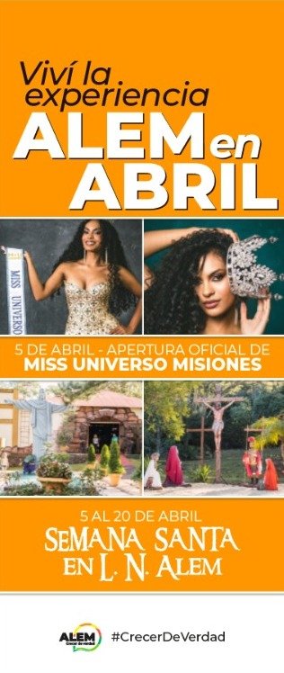 Leandro N. Alem – Con la impronta de ser una ciudad de eventos la localidad comienza éste sábado 5 a transitar lo que llaman “viví la experiencia de Alem en Abril”, un novedoso compendio de actividades con fuerte epicentro de la Semana Santa pero que también suma concurso de belleza y deportes.