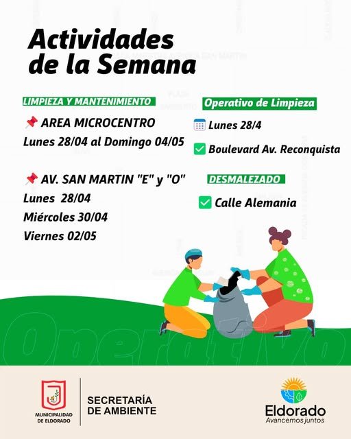 Cronograma de trabajo de la Secretaría de Ambiente para la semana del 28 de abril al 4 de mayo.