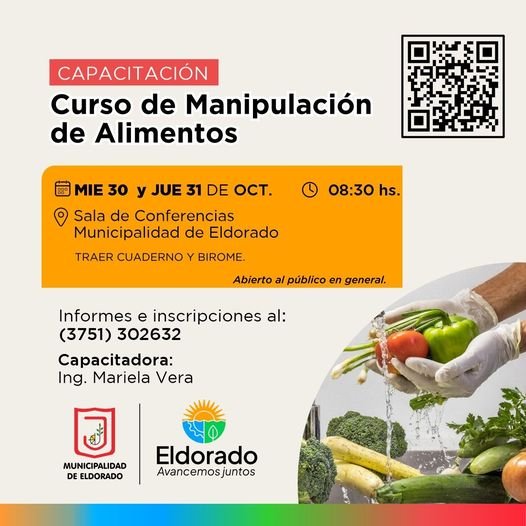 La Dirección de Recursos Humanos con el acompañamiento de la Dirección de Bromatología Veterinaria y Zoonosis de la Municipalidad de Eldorado, brindarán un nuevo Curso de Manipulación de Alimentos.