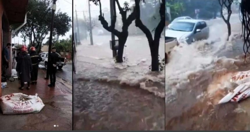 Algo más que un susto sufrió una madre que caminaba con junto a su beba de un año y su cuñada por el centro de Oberá cuando, debido a las intensas lluvias de esta mañana, fueron arrastradas por la corriente.