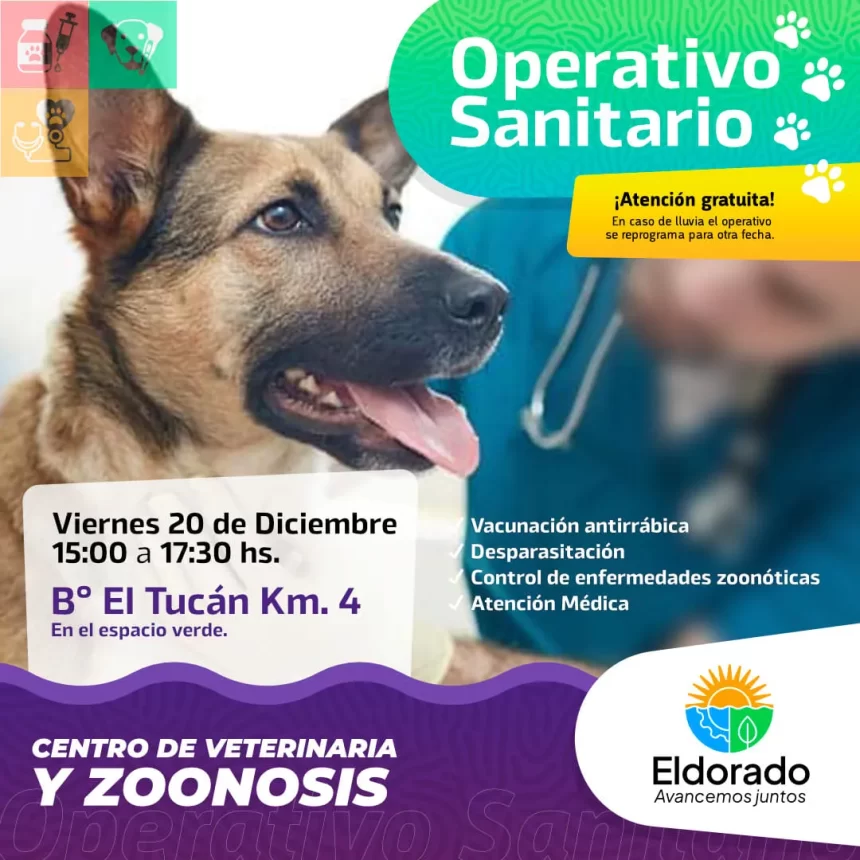 El centro de Veterinaria y Zoonisis de la municipalidad de Eldorado continúa llevando a los barrios de la ciudad operativos sanitarios gratuitos para que los vecinos se puedan acercar con sus animales de compañía.