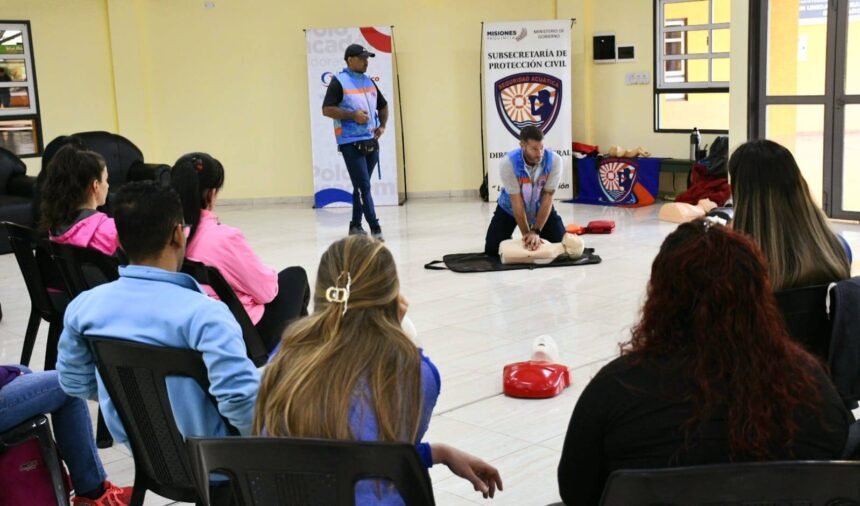 La charla estuvo a cargo de Franco Bacigalupi y José Aguirre de la Subsecretaria de Protección Civil de la provincia de Misiones.