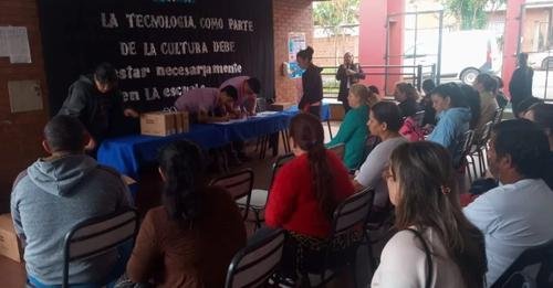 En primer turno los facilitadores, el personal realiza la entrega y verifica la identidad de los alumnos y también hacer firmar el comodato a los padres, quienes son los responsables de la correcta utilización del dispositivo por parte de los estudiantes, estuvieron en la escuela CEP N° 16 del km 3.