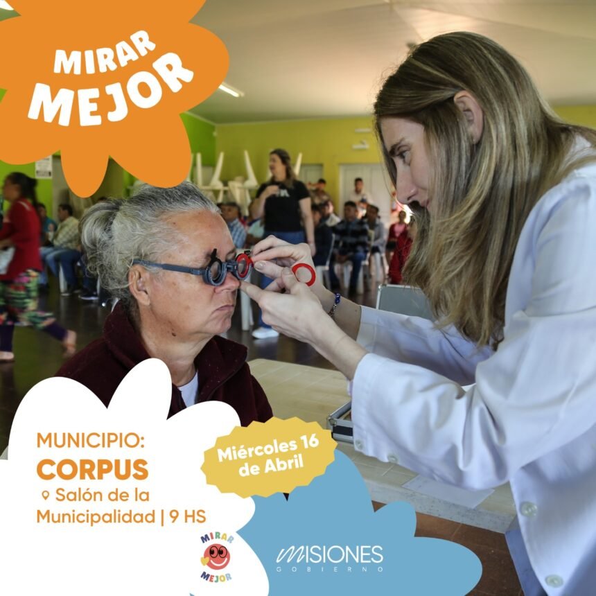. Este miércoles, el programa “Mirar Mejor” brindará asistencia oftalmológica integral en Corpus Christi. A partir de las 9 hs., en el salón de la Municipalidad de Corpus, vecinos y vecinas de la localidad podrán acceder de forma totalmente gratuita a controles oftalmológicos, diagnósticos realizados por profesionales de la Sociedad Oftalmológica de Misiones (SOMI) y, en los casos necesarios, a la entrega de anteojos recetados y/o derivaciones médicas.