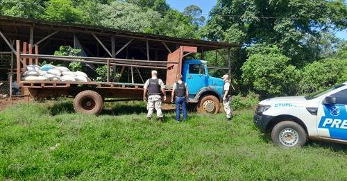 Personal de la Prefectura Naval Argentina decomisó un cargamento de más de 37 mil kilos de soja y maíz en El Soberbio, Misiones.