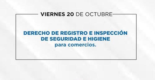 Desde la Municipalidad de Eldorado recuerdan que el próximo 20 de octubre , vence el Derecho de Registro de Inspección de Seguridad e Higiene para comercios.