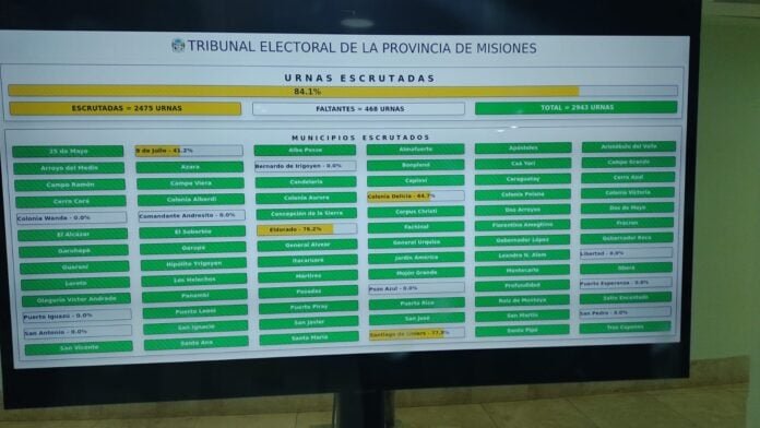 Pozo Azul, Bernardo de Irigoyen, Comandante Andresito, Colonia Wanda, San Antonio, Puerto Iguazú, Libertad, Puerto Esperanza y San Pedro son los municipios que aún faltan ser escrutados.