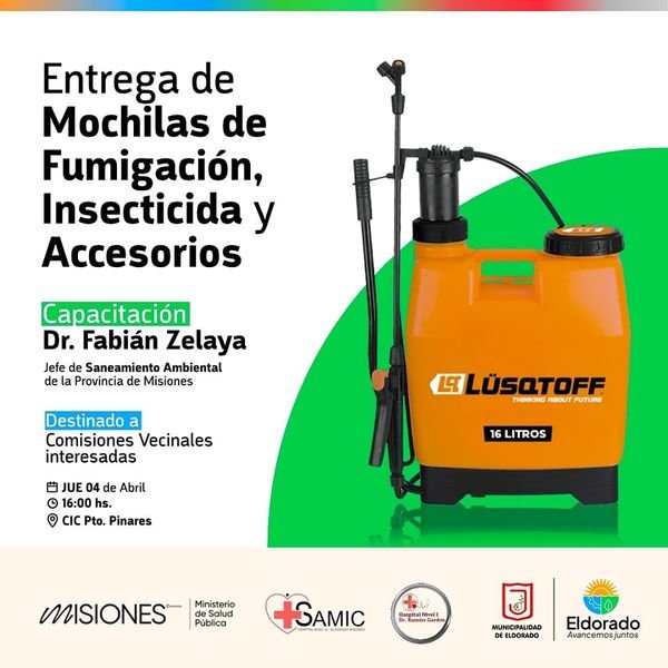 Este jueves, 4 de abril, a las 16 horas, se realizará la entrega de mochilas de fumigación, insecticida y accesorios a Comisiones Vecinales interesadas.