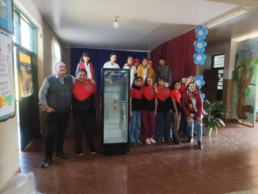 Recientemente, el equipo del IMAC visitó la Escuela N.º 68 “El Portal del Saber”, ubicada en el Paraje 3 Esquinas de la localidad de San Javier. El motivo de la visita fue la entrega de una heladera vertical, premio correspondiente al concurso organizado el año anterior en colaboración con Patricia Paproski y la ingeniera Sandra Quintana.