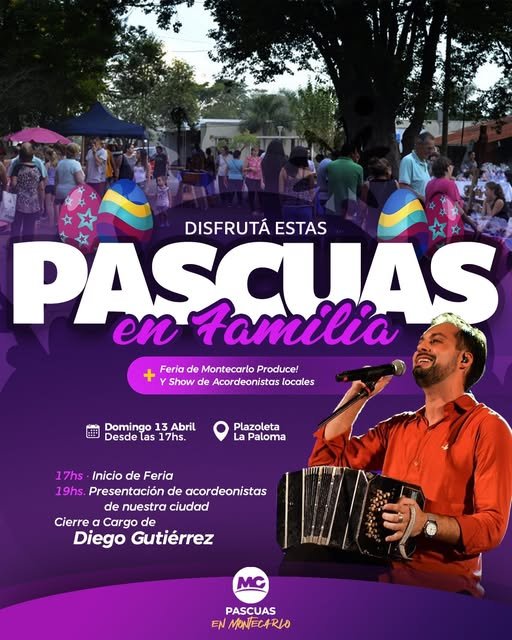 17:00 hs – Comienza la Feria de Pascuas de Montecarlo Produce: Una excelente oportunidad para disfrutar de productos locales y mucho más!