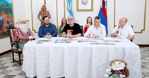 Marcelo Dacher, presidente de la Fiesta Nacional de la Navidad del Litoral; Matías Sebely, intendente electo de Alem, el ministro de Turismo, José María Arrúa y el gobernador electo de Misiones, Hugo Passalacqua presidieron hoy la presentación oficial de las actividades en Casa de Gobierno.