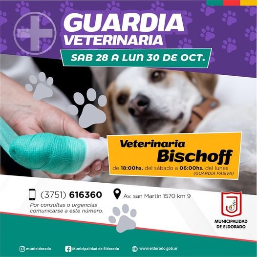 Este fin de semana se encontrará de guardia la Veterinaria Bischoff.