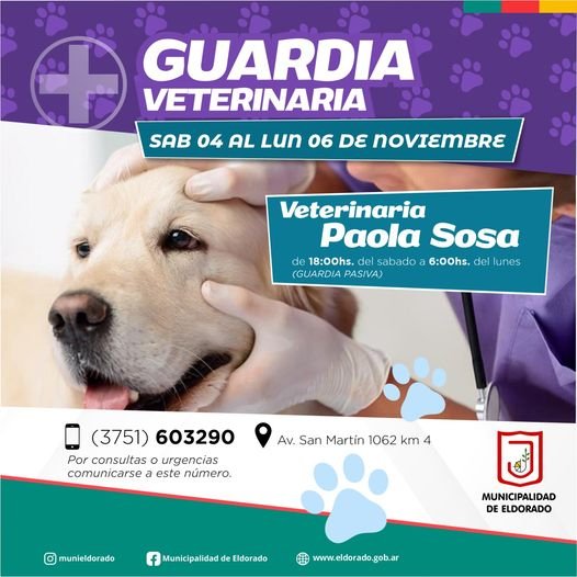 Este fin de semana se encontrará de turno la Veterinaria Sosa.