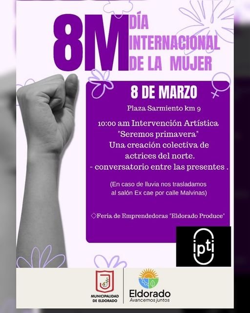 A partir de las 8 horas se desarrollará la feria de Eldorado Produce con productoras independientes, y a las 10 hs se realizará una intervención cultural con una obra de teatro con reflexión, abierta a todo público.