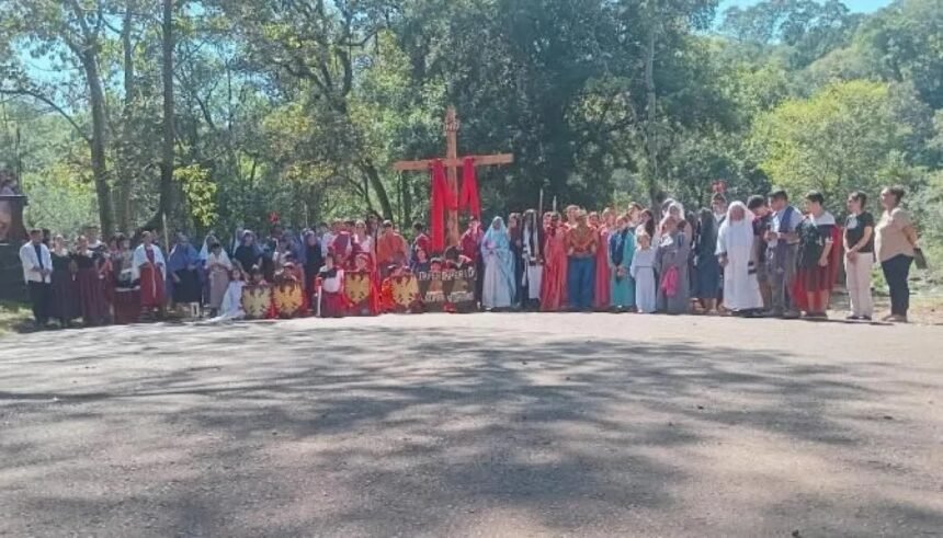 El Complejo Municipal Saltos del Tabay fue escenario esta mañana de una emotiva representación del Vía Crucis de la Selva, que congregó a numerosos feligreses en el marco de las celebraciones por el Viernes Santo.