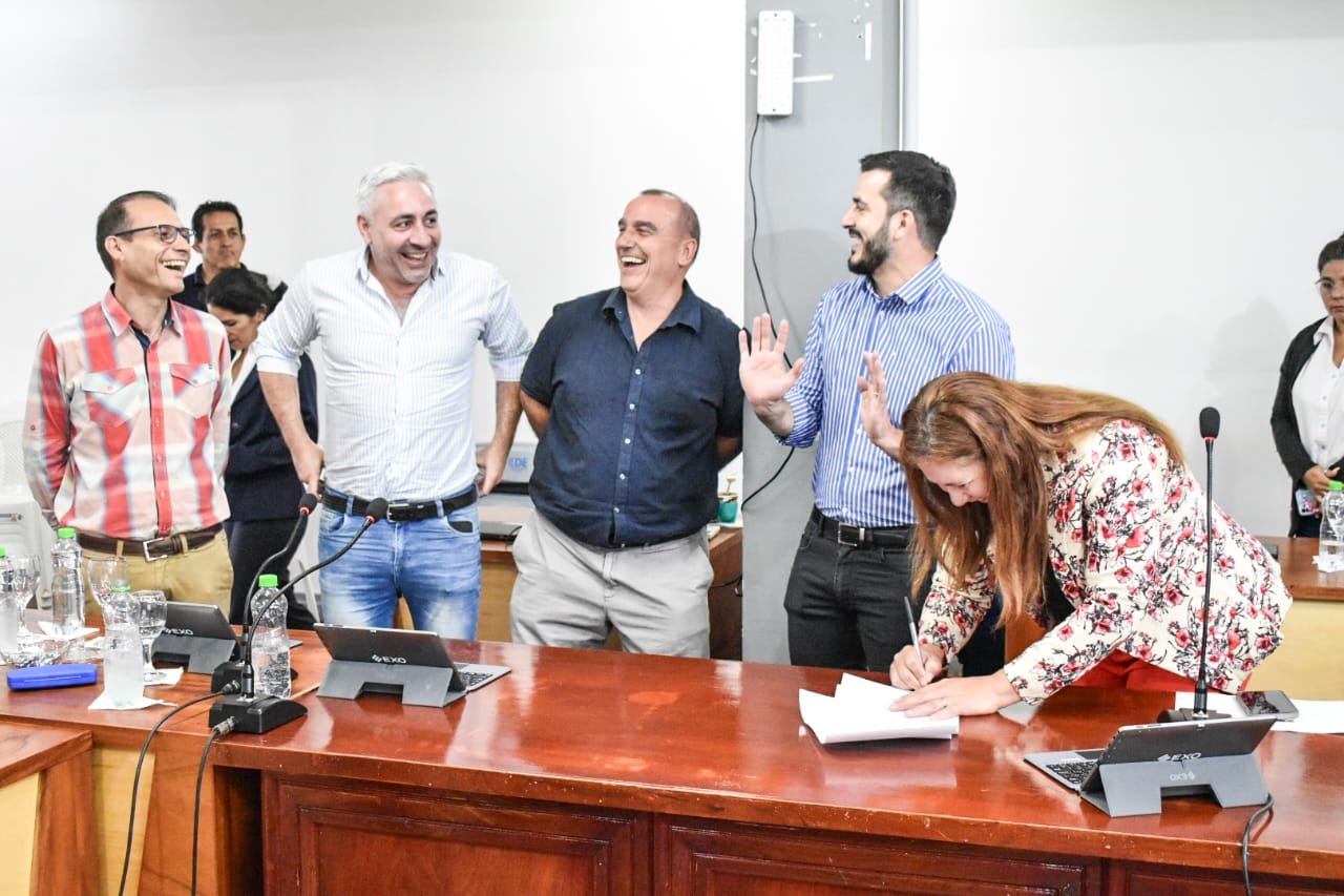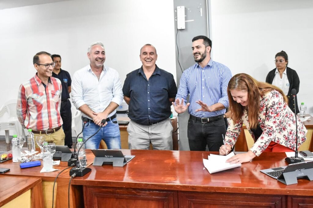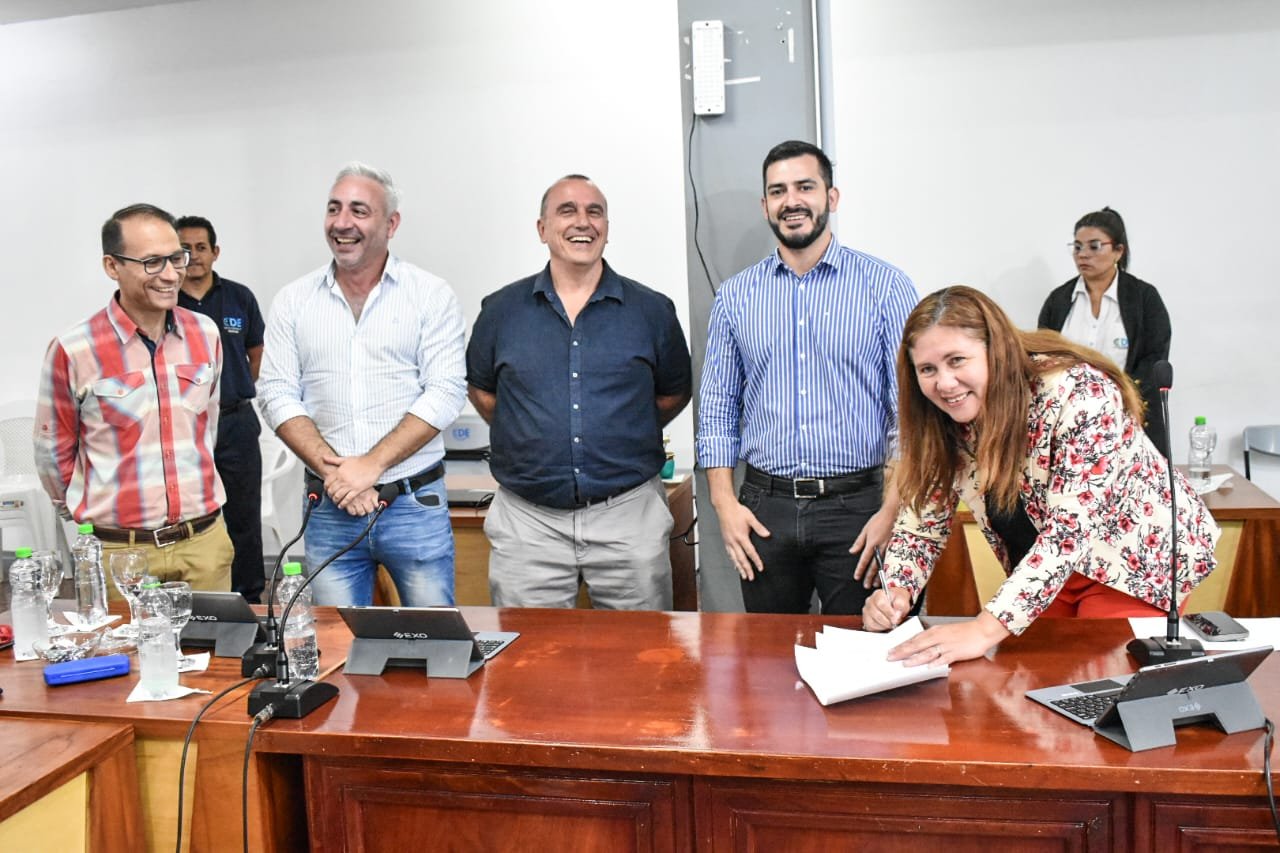 Firmaron el convenio – junto al Intendente Dr. Rodrigo Duran – la Presidenta Dra. María Cristina Bandera junto a los Presidentes del HCD de Posadas y del HCD de Garupa: Dr. Jair Dib y Sr. Miguel Rauber.