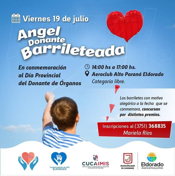 La jornada se realizará el 19 de julio, en el Aeroclub Alto Paraná Eldorado, a partir de las 14 hs bajo el nombre «Angel Donante». Invitan a toda la comunidad a sumarse a este evento en familia para homenajear y agradecer a los donantes de órganos y tejidos y a sus familiares.
