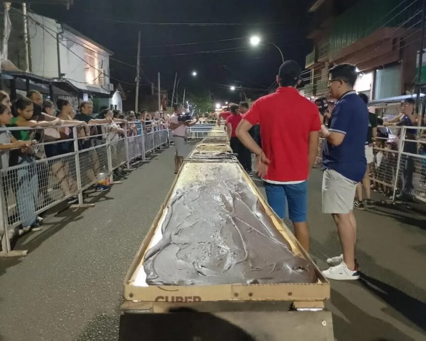 Para celebrar la pascua, la chocolatería familiar de Marina y Francisco invita a toda la comunidad a degustar sus chocolates de forma gratuita. Este es el quinto año consecutivo que llevan adelante el agasajo que busca devolver un poco de lo que reciben diariamente. Este año redoblaron la apuesta y cerraron la calle para montar un toblerone de 40 centímetros de ancho y 20 metros de largo.
