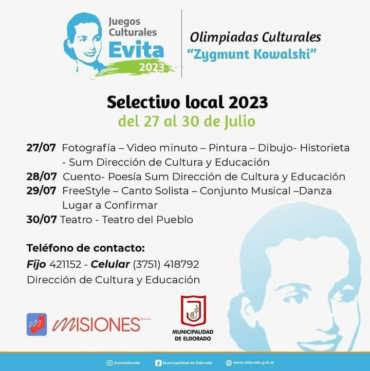 Del 27 al 30 de Julio se realizará el Selectivo Local de las obras presentadas para los Juegos Culturales Evita 2023