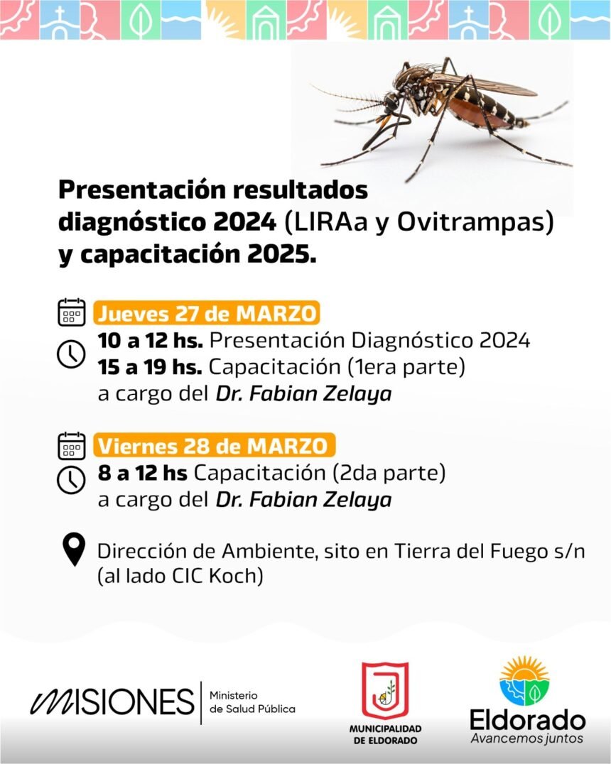 La misma consiste de dos jornadas, de presentación de diagnóstico 2024 arrojados por LIRAa y Ovitrampas y dictado de capacitación acerca de la interpretación de los resultados e implementacion de estrategias en el periodo 2025.