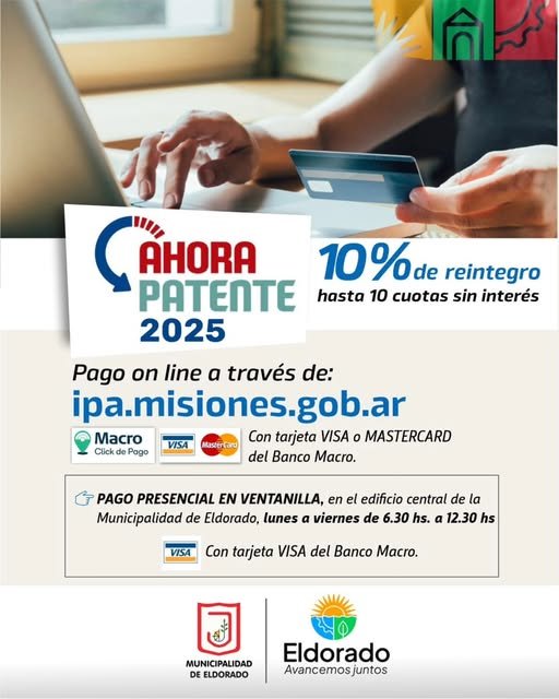 El pago podrá realizarse a través del botón de pagos de la web ipa.misiones.gob.ar con tarjetas Visa y Mastercard.