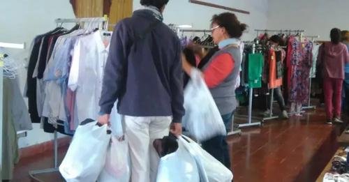 Durante la jornada de venta de este jueves 7 de septiembre una integrante de la comisión directiva del Hogar Madre Teresa de Calcuta que “hay familias enteras llegan a comprar ropas y zapatos a excelente precios, la prendas valen desde $50 a $100 pesos, un jeans en buenas condiciones a $300 o un buen pantalón a $500 máximo, así se arman bolsas con 15 prendas de $1500, siendo una verdadera oferta”.
