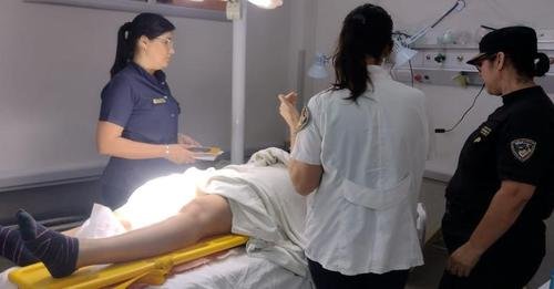 Acorde el informe médico, la misma presenta herida cortante profunda en el muslo derecho y, además de la atención médica recibida, cuenta con la asistencia del Gabinete Interdisciplinario de la Unidad Regional II.