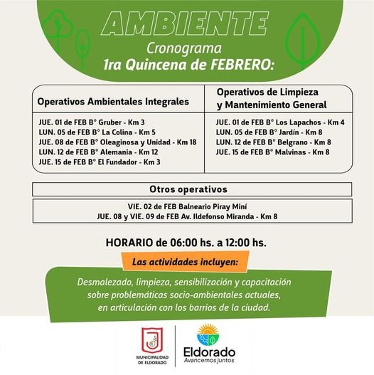 📌El mes de febrero se iniciará con trabajos en el barrio Gruber y en el Balneario Municipal Piray Guazú.