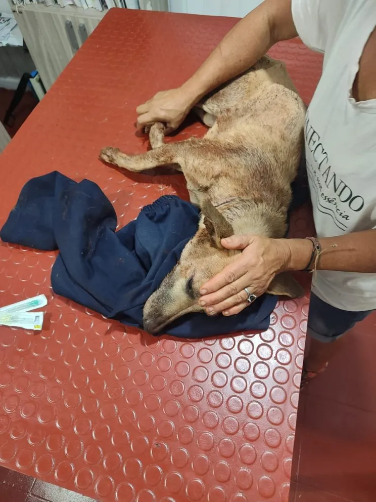 Era las 11:30 cuando Liliana recibió el llamado y un video «Deje todo lo que estaba haciendo y me dirigí al lugar, cuando llego estaban sentados afuera la abuela con sus dos nietos, una adolescente y un niño, vi los palos y los hierros que tenían en la mano», contó Liliana a El Territorio, sobre el inició de un desesperado intento por salvar al animal.