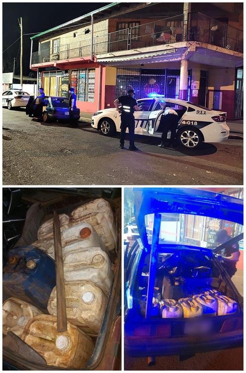 Asímismo, en otra de las intervenciones los uniformados dieron con un vehículo Ford Escort, el cual se encontraba estacionado en cercanías de una plaza pública y en su interior pudieron detectar que el mismo llevaba varios bidones con algún tipo de sustancia inflamable, por lo cual una vez que se entrevistaron con el conductor el mismo comento que era combustible, por esta razón, el líquido que presentaba un peligro inminente, fue retenido junto al auto que carecía de documentaciones.