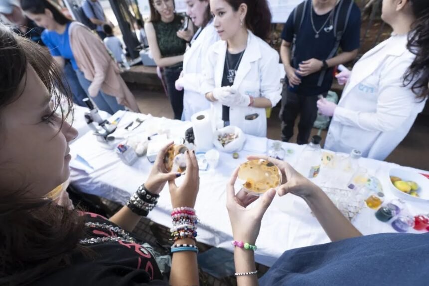 Esta mañana la Universidad Nacional de Misiones realizó la Kermés Científica en la plaza 9 de Julio en el marco del Mes del Investigador y la Investigadora Científica, donde más de 300 estudiantes de nivel primario y secundario de Posadas y Candelaria participaron de la propuesta. La jornada incluyó cerca de 30 stands interactivos a cargo de grupos de investigación y divulgación, con actividades sobre hongos, plantas medicinales, desafíos matemáticos, evolución humana, genética y biodiversidad, organizadas por la Facultad de Ciencias Exactas, Químicas y Naturales.
