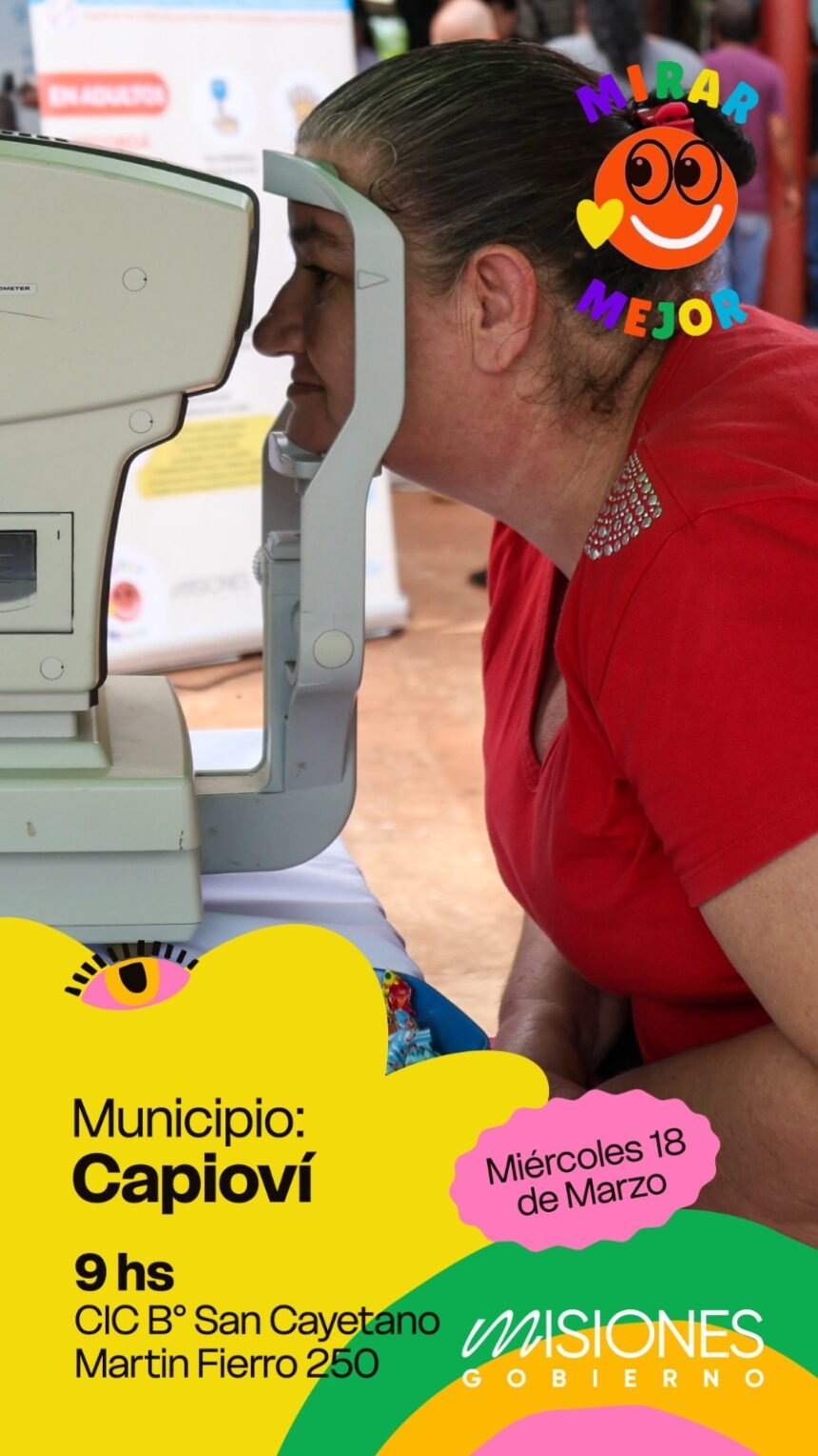 Este miércoles 18 de marzo, a partir de las 9 hs., se llevará a cabo un nuevo operativo del programa provincial “Mirar Mejor”. En esta oportunidad, la jornada tendrá lugar en el Centro Integrador Comunitario (C.I.C) ubicado en el Barrio «San Cayetano» sobre Martín Fierro. La iniciativa, que se desarrolla íntegramente con recursos provinciales, es ejecutada por el Instituto Provincial de Lotería y Casinos (IPLyC), la Sociedad de Oftalmología de Misiones (SOMI) y la Municipalidad de Capioví, y brinda atención oftalmológica integral y sin costo a los vecinos.