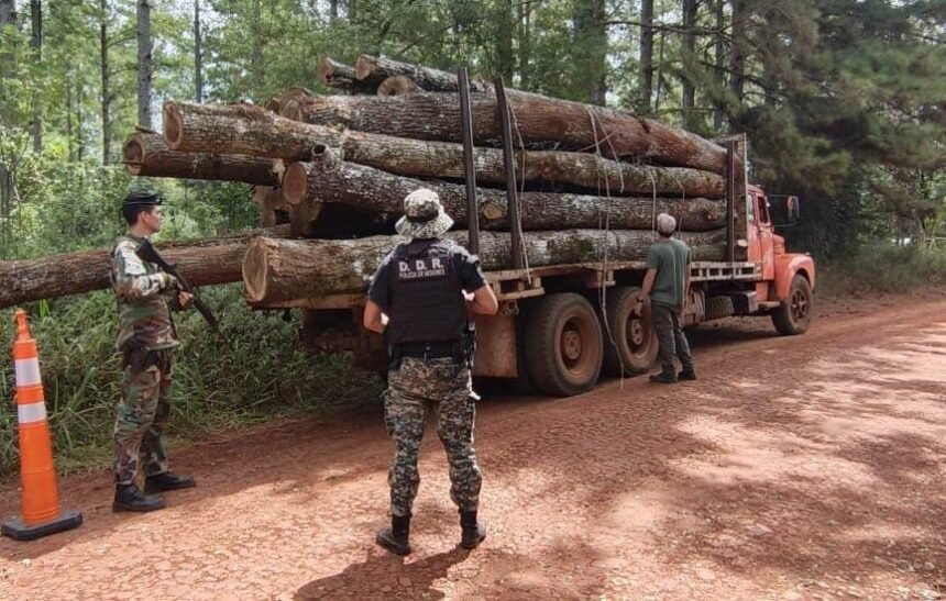 El primer procedimiento se concretó cerca de las 4:40 horas, cuando efectivos de la División Delitos Rurales de Comandante Andresito, junto a guardaparques de la Reserva Cabure-í, interceptaron un camión que circulaba por el Pasaje Península transportando madera nativa.