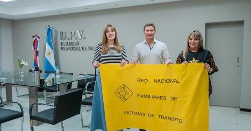 Participaron de la firma del convenio el presidente de la DPV, Ingeniero Sebastián Macias; la vicepresidenta de la Red Nacional de Familiares de Víctimas de Tránsito Estrellas Amarillas, Gladys Bizzozzero y María Virginia Araujo, Referente Provincial de la Asociación y Coordinadora Provincial de la línea 149-Opc. 2.