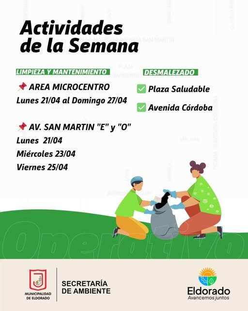 Municipalidad Eldorado: Cronograma de trabajo de la Secretaría de Ambiente para la semana del 21 al 27 de abril
