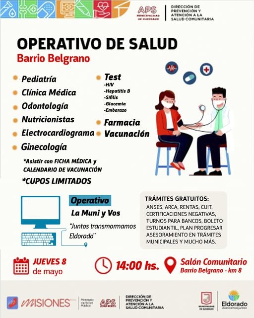 Este jueves, 8 de mayo, a partir de las 14 hs., se llevará adelante una jornada de atención, en esta oportunidad en el barrio Belgrano.