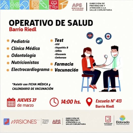 El equipo de la Dirección de Prevención y atención a la Salud Comunitaria, en conjunto con el equipo de APS estarán realizando un operativo integral de salud en la Escuela N°413 del barrio Santo Domingo.