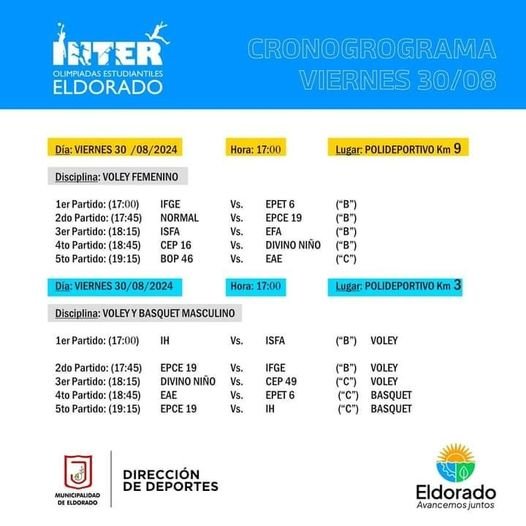 Olimpiadas Estudiantiles| Conocé el cronograma de encuentros deportivos para este viernes y sábado